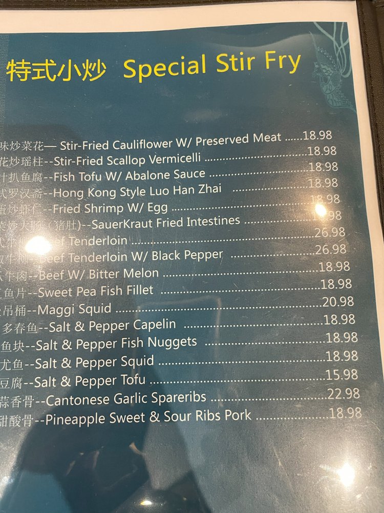 Cabbage: Choices include stir-fried, with pork, house soup, boiled with oyster or white sauce, garlic sauce.